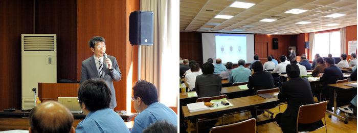 アンリツインフィビス株式会社マーケティング部 アシスタントマネージャー 植山英弘氏をお招きして、加工食品の出荷前に行われる異物検査で活躍する金属探知機の技術研修会を開催しました。研修内容は、「金探」と略称される装置の動作原理、特性、設置、運用に関する基礎的な内容で、製造現場で役立つ平易な解説により参加者の理解を深めて頂き、各工場での品質管理技術の向上を図りました。終了後に個別に質問される方も多く大変有意義な研修会でした。